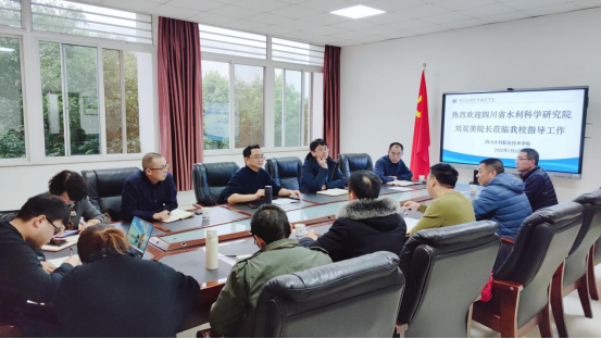 为发挥院校合作优势,助力学校双高建设,围绕水利厅党组“3226”总体工作思路,推进科技创新更好服务我省水利高质量发展,2022年1月6日下午,学校与四川省水利科学研究院在羊马校区召开了科研合作工作专题会。四川省水利科学研究院刘双美院长、麻泽龙副院长及科管室、水资源所、材结所、新技术所、信息化所、水保所等相关科室负责人参会。会议由四川水利职业技术学院分管科技的李红卫副校长主持,院科研处等相关同志参会。会议交流了两院各自的科研团队及成果情况,明确双方优势资源,共同确定围绕厅党组“20项具体工作”,梳理科技创新服务水利发展的着力点,强化两院的资源整合,合作创新。会议达成以下共识:
