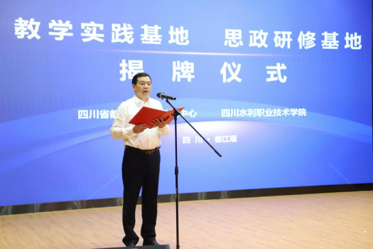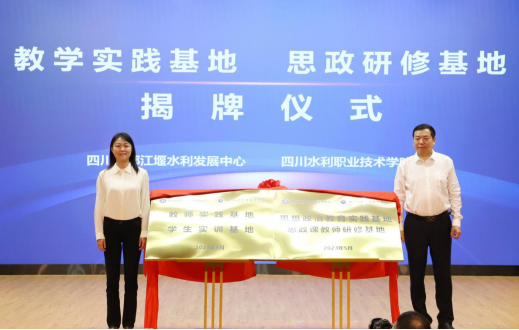 为深入贯彻落实党的二十大精神,践行四川水利“3226”工作思路,推进水利职业教育深化产教融合,创新水利人才培养模式,为四川水利高质量发展提供人才支撑,四川水利职业技术学院与四川省都江堰水利发展中心达成合作共识,共建教学实践基地、思政研修基地。5月30日上午,双方在都江堰举行签约揭牌仪式,水利学院党委书记陆健,都发中心党委书记、主任朱泽华共同为基地揭牌并致辞。