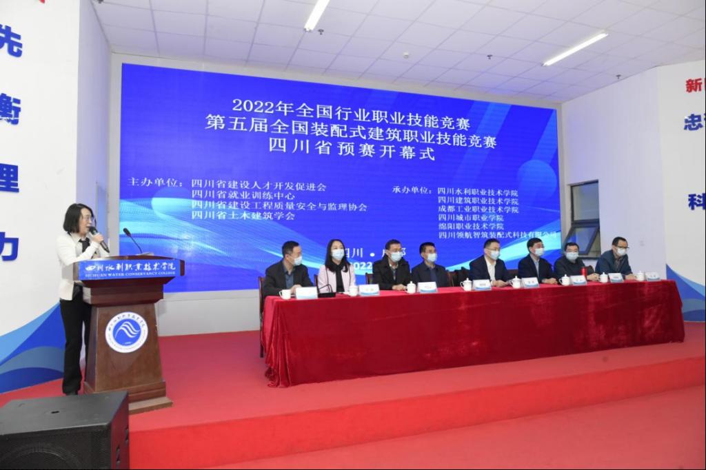 为进一步贯彻落实党的二十大报告中关于科技强国、人才强国的重要精神,11月12日,2022年全国行业职业技能竞赛—第五届全国装配式建筑职业技能竞赛四川省预赛在四川水利职业技术学院图书馆学术报告厅顺利开幕。四川水利职业技术学院、四川省住房和城乡建设厅人事教育处、四川省建设人才开发促进会、四川省建设工程质量安全与监理协会、四川省土木建筑学会、《四川建筑》杂志社等单位领导代表出席开幕式并致辞,本次竞赛专家委员会专家、各承办单位领导以及裁判人员、参赛代表和大赛全体工作人员参加开幕式。