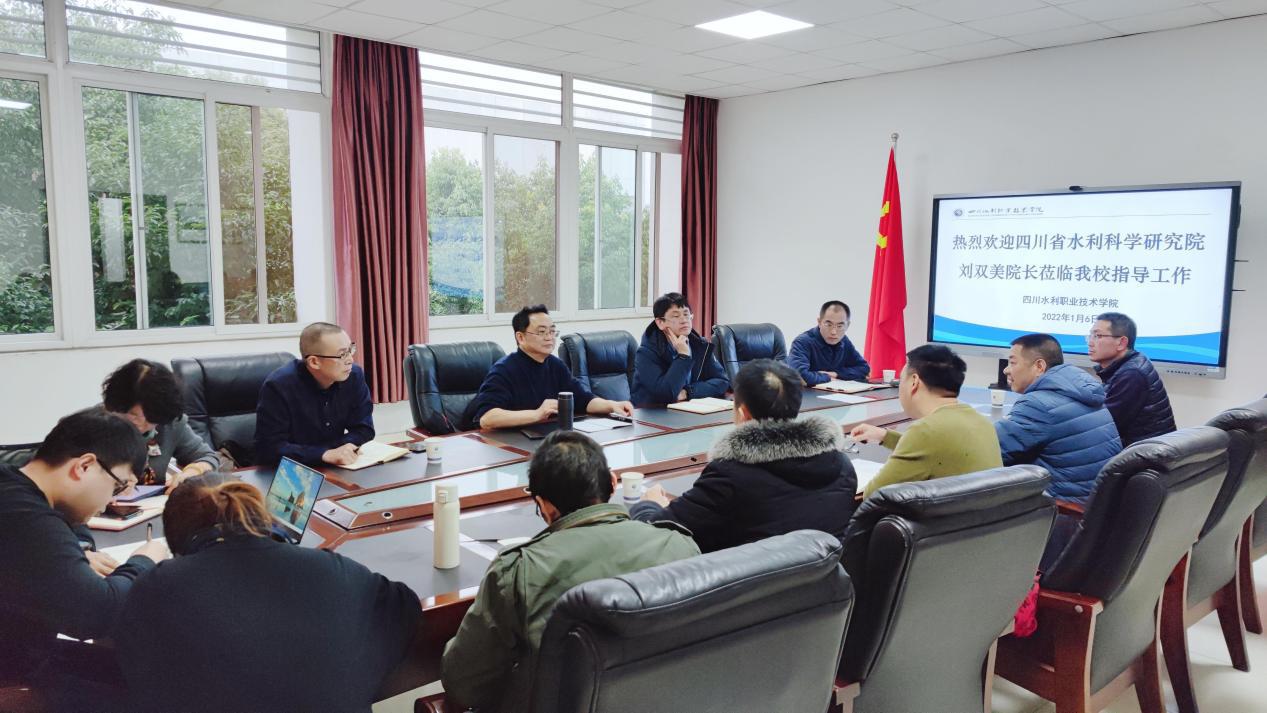 为发挥院校合作优势,助力学校双高建设,围绕水利厅党组“3226”总体工作思路,推进科技创新更好服务我省水利高质量发展,2022年1月6日下午,学校与四川省水利科学研究院在羊马校区召开了科研合作工作专题会。四川省水利科学研究院刘双美院长、麻泽龙副院长及科管室、水资源所、材结所、新技术所、信息化所、水保所等相关科室负责人参会。会议由四川水利职业技术学院分管科技的李红卫副校长主持,院科研处等相关同志参会。会议交流了两院各自的科研团队及成果情况,明确双方优势资源,共同确定围厅党组“20项具体工作”,梳理科技创新服务水利发展的着力点,强化两院的资源整合,合作创新。会议达成以下共识: