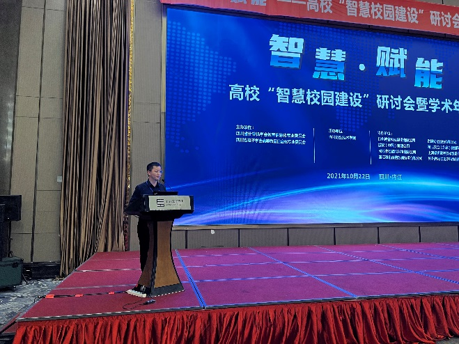 2021年四川高校“智慧校园建设”研讨会暨学术会,于10月23日,在内江职业技术学院隆重召开,年会由四川省计算机学会教育信息化专业委员会、四川省电子学会高等教育信息化专业委员会主办,内江职业技术学院承办。四川省计算机学会教育信息化专业委员会负责人、四川省电子学会高等教育信息化专业委员会负责人、内江职业技术学院院长黄刚就研讨会暨学术会致辞并颁发奖项。我校信息技术中心干部教师代表参加了会议
