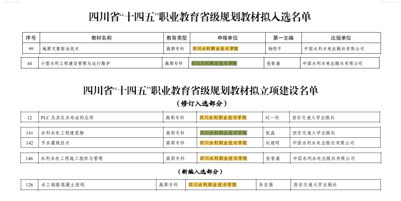 近日,自四川省教育厅又传来喜报,学校7部教材入选四川省首批“十四五” 职业教育省级规划教材书目和立项建设。