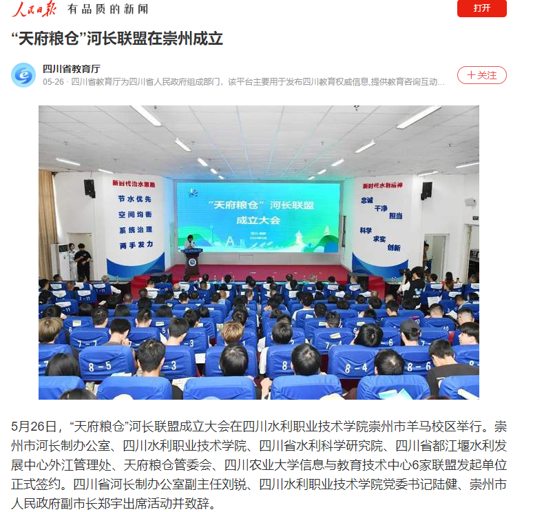 【人民日报】“天府粮仓”河长联盟在崇州成立