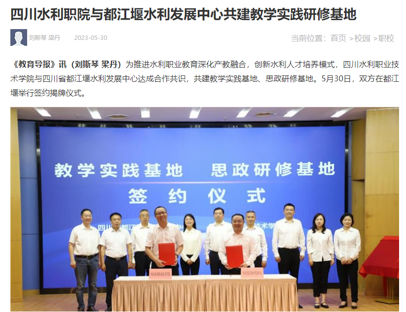 【教育导报网】四川水利职院与都江堰水利发展中心共建教学实践研修基地