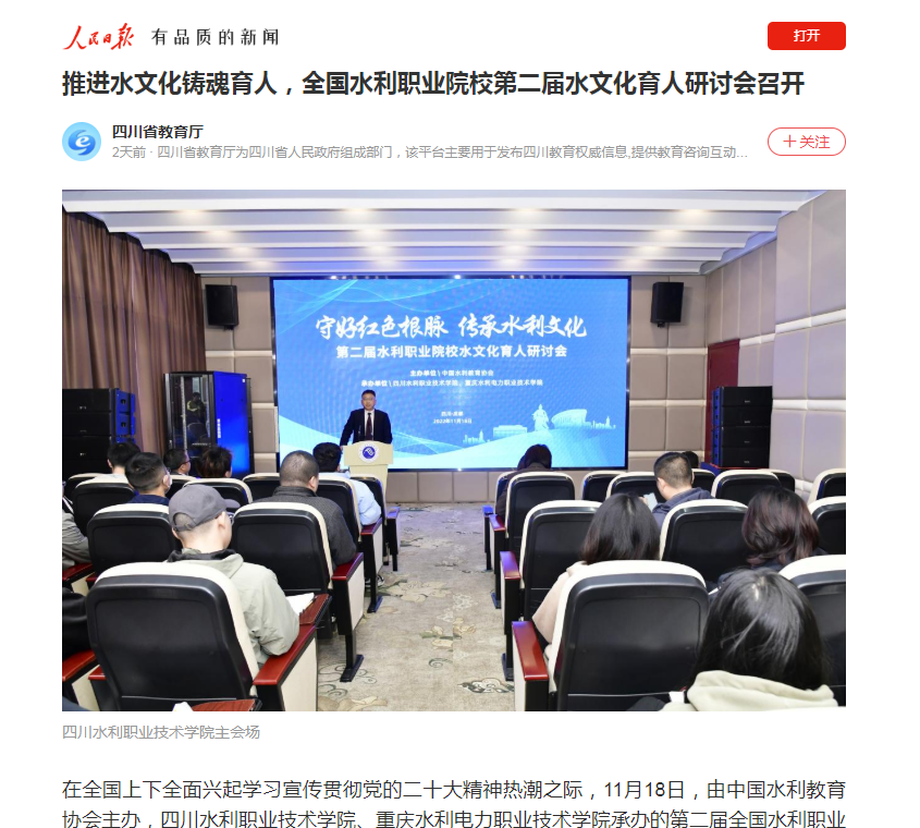 【人民日报】推进水文化铸魂育人,全国水利职业院校第二届水文化育人研讨会召开