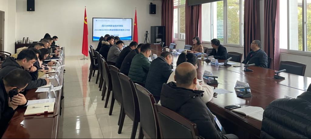 2021年7月5日--9日中国检验认证集团四川有限公司4位高级审核员对23个部门进行了监督评审,开具了3个不合格项、59个改进事项。各部门和二级学院进行了为期半年的深度整改。12月8日,发展规划与质量管理处邀请中国质量检验认证中心高级审核员赵紫秀、召集各部门和二级学院的负责人,组织召开了2021年ISO9001质量管理体系整改工作会,副校长张智涌主持会议,副校长李红卫作为管理者代表发言。